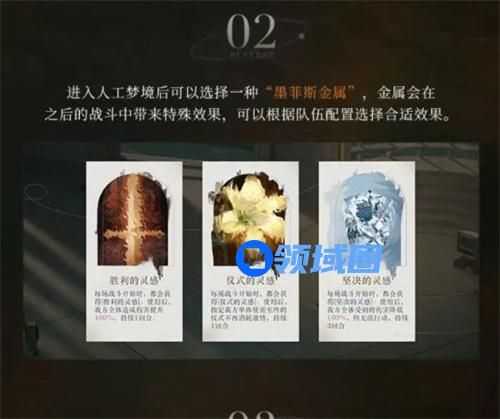 1、进入人工梦境后可以选择一种“里非斯金属”,金属会在 之后的战斗中带来特殊效果,可以根据队伍配置选择合适效果。