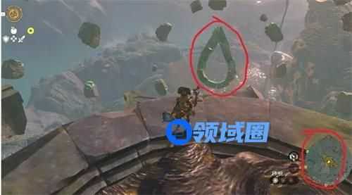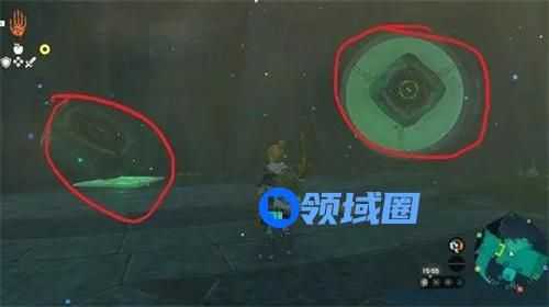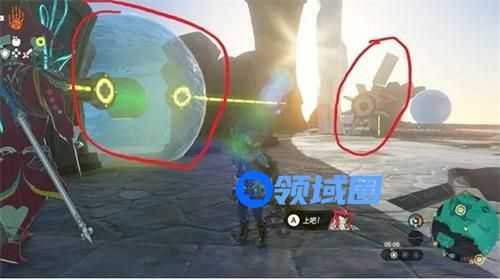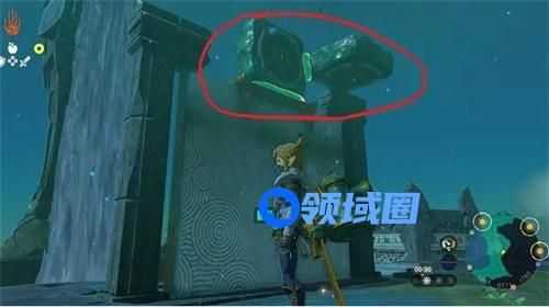 3.三号水车(空中5点方向):跳到旁边的柱子上,腾空用林克时间,弓箭锁定高速旋转柱子里的机关,击中就可开启水车门;