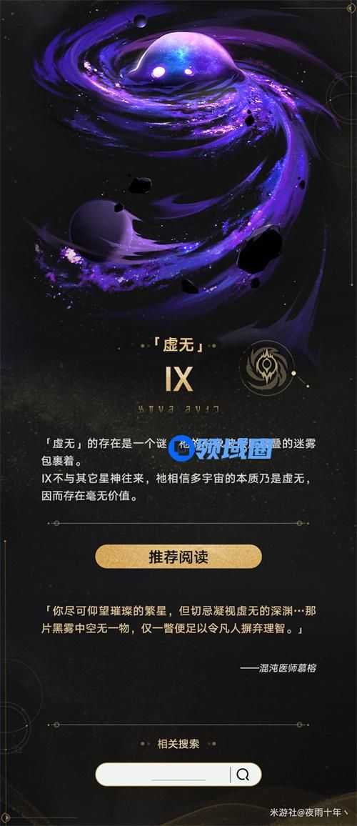 IX没有和别的星神来往,祂认为多宇宙的性质是虚无的,所以存在是没有价值的。
