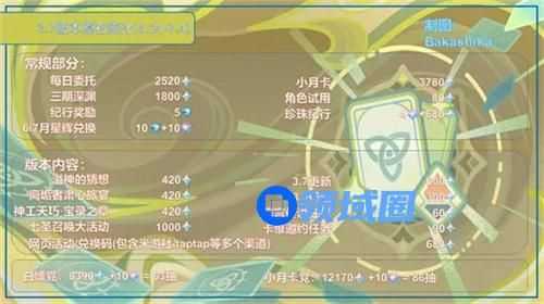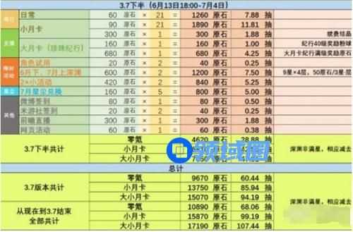 总的来说,预计3.7版本可白嫖63抽、小月卡约86抽左右。另外,3.7属于究极长草版本,新东西比较少,没有魔神任务、没有新地图、更没有新五星角色。