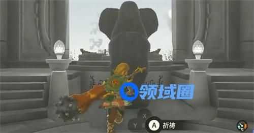 2、前往时之神殿后在教学内推门的前面就有这个女神像可以对话使用。