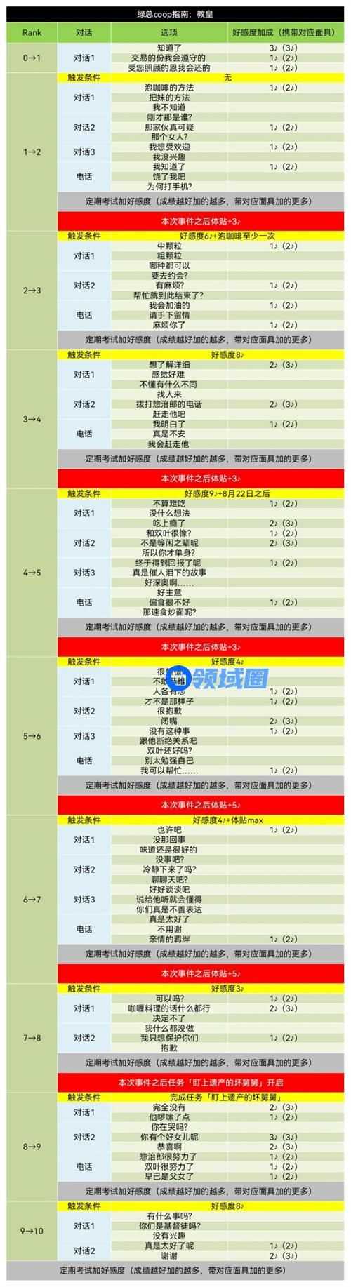 1、在平日里里和佐仓惣治郎只能在咖啡店与他进行常规事件店里帮忙(咖啡修行),没有任何外出邀约。在8月21日以前一次事件增加1,在8月22日之后上升至2,携带对应面具加的更多。这种方式消耗行动次数获得的好感度却一般,这也是其coop优先级不高的一个原因