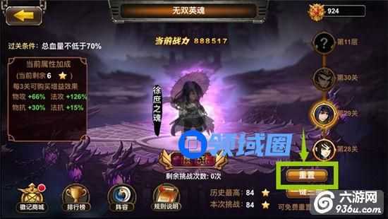 随着层数的提高,敌人变得越发凶残。但是没关系,年轻没有失败,点击重置马上重新开始,每天都有1次免费重置的机会!