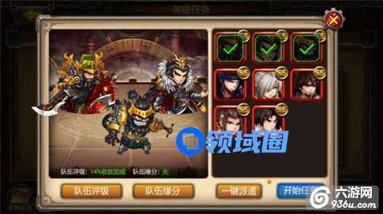 不同级别的任务要求的队伍武将数量不同,S级要求3个,A级要求2个,B级要1个。不同的武将阵容如果带有缘分,更会有收益加成,点击【队伍缘分】即可查看缘分加成详情哦~