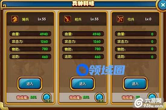 武将分为骑兵、枪兵和弓兵。各位主公可以根据自己武将的属性进行相应的兵营科技研究。