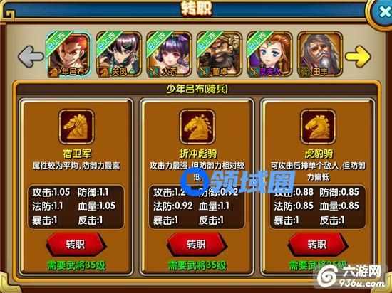 武将到35级即可转职,每个兵种转职的属性都不同,根据自己的布阵合理选择武将转职,转职后也能更改。