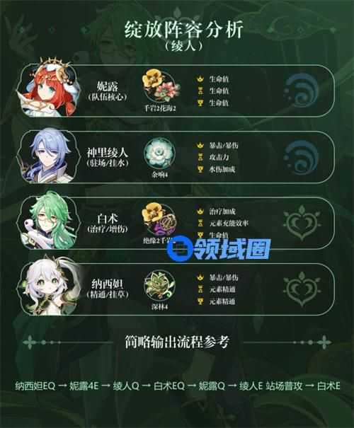 一、原绽放队伍:「神里绫人+妮露+纳西妲+白」/「艾尔海森+白术+行秋+妮露」