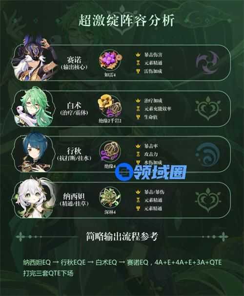 三、 超激绽队伍:「赛诺白术+行秋+纳西妲」/「赛诺+白术+夜兰+纳西妲」