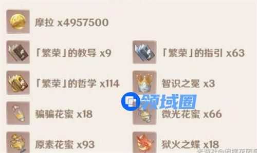 申鹤天赋升级材料:摩拉×4957500「繁荣」的教导 x9、「繁荣」的指引×63、「繁荣」的哲学×114、智识之冕x3、骗骗花蜜×18、微光花蜜×66、狱火之蝶x18、原素花蜜×93、