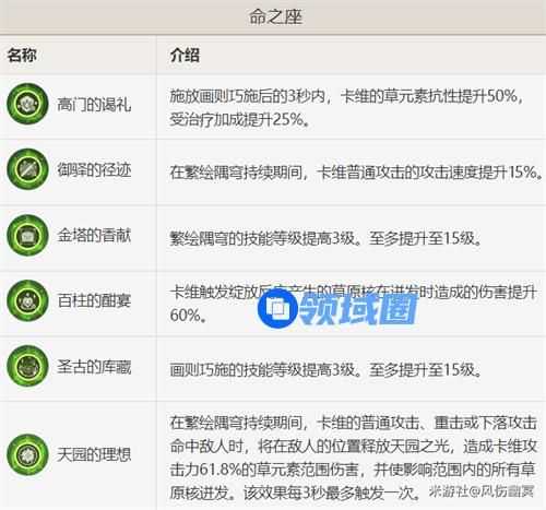 一命是释放e技能后,卡维草抗提升50%,受治疗加成提升25%。