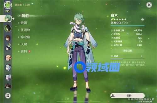 2、白术由于是辅助奶妈角色,所以白术是吃生命值加成,不吃精通加成,而且白术一般也是双草队伍,所以精通完全不需要自己堆。