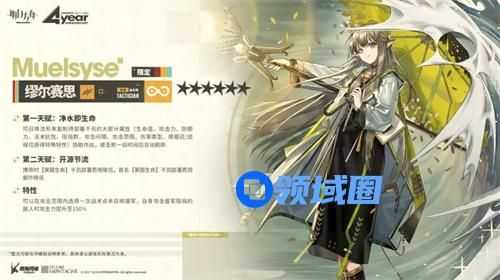 第一点:缪尔赛思是属于限定干员,也是首位限定六星先锋干员