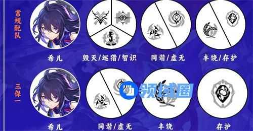 阵容分析:在队伍当中由于希儿再现的特殊机制使得她基本上就是主打的一个速度流,所以在没有布洛妮娅的情况下,带上停云是最优解,核心阵容和绀海组差不多,而由于巡猎对群不行,所以艾丝妲作为破盾副c是最优解,娜塔莎新手都有所以比较适合。