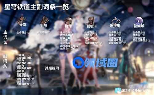 【连接绳】主词条:能量回复效率%、生命值%、攻击力%、防御力%、击破特攻%(以上属性随机出现)