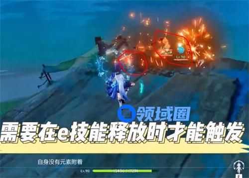 2、通过E技能打出怪物的扩散反应获取染色:这个方法是可以直接获取三层染色,但需要手法和操作,所以一般选择先自身染色之后通过其他元素扩散获取最后两层染色。