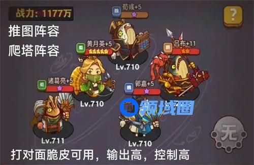 这个阵容搭配足够我们打通到2000关。其中核心就是吕布和太史慈,优先提升吕布等级和资质。
