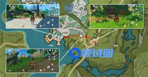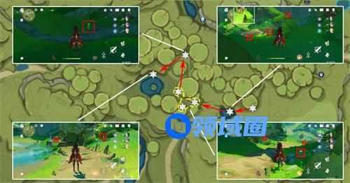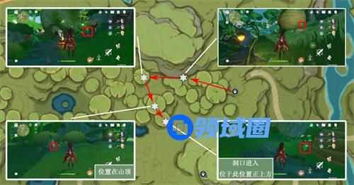 前两个采集点都在小屋附近(附近有丘丘人);要特别注意第三采集点位于山顶,第四采集通过正上方的洞口直接进入,避免重复跑路。