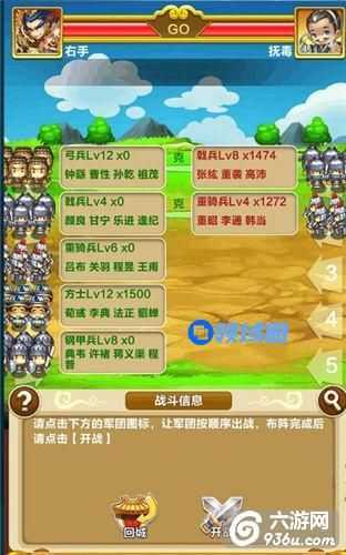 有了以上的将领和士兵,我们就可以进行打仗了!战斗时排兵布阵非常重要。