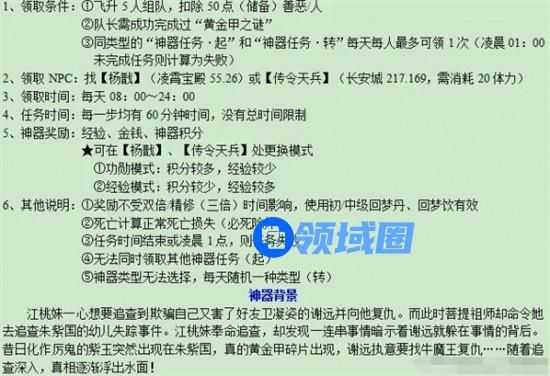 ④玩家在接取该任务之后无法同时领取其他神器任务(转)