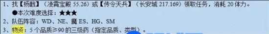 1、凌霄宝殿(55.26)找【杨戬】或长安城(217.169)找【传令天兵】领取任务,难度选择3星,消耗20体力。