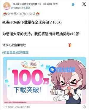 官方表示,《2.5 次元的诱惑(理理沙)天使们的舞台》于 9 月 3 日(二)开始提供服务后,目前全球下载量已突破 100 万次。为了纪念这个时刻,于 9 月 11 日(三)前完成新手教学的玩家,可获得 10 连转蛋票券作为奖励。搭配事前登录的达成报酬、上市纪念登入奖励、以及初心者任务等,总共可获得数量超过 100 次转蛋的游戏内道具。