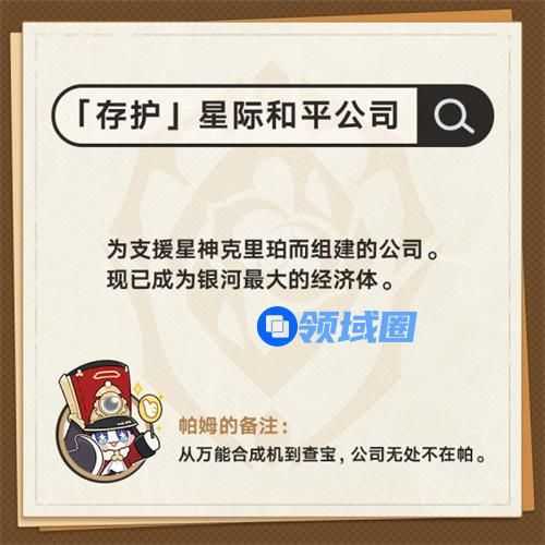4、「存护」星际和平公司。为支援星神克里珀而组建的公司。现已成为银河最大的经济体。
