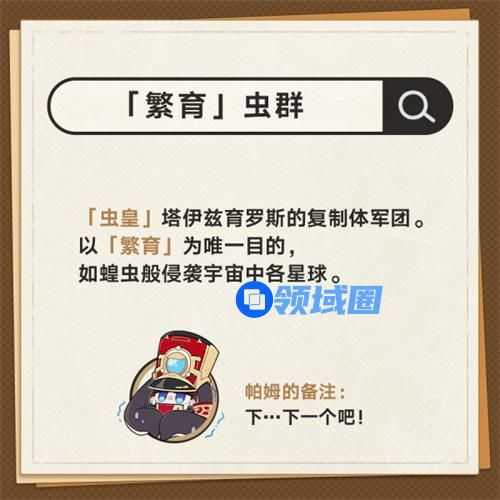 6、「繁育」虫群。「虫皇」塔伊兹育罗斯的复制体军团。以「繁育」为唯一目的,如蝗虫般侵袭宇宙中各星球。