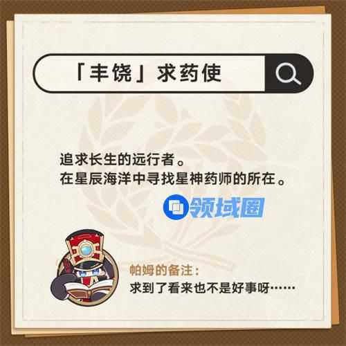 8、「丰饶]求药使。追求长生的远行者。在星辰海洋中寻找星神药师的所在。