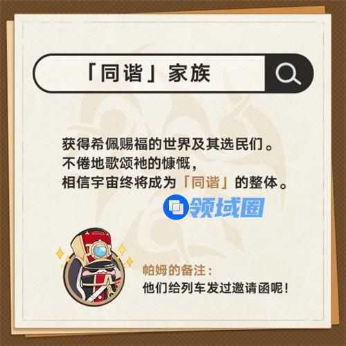 16、「同谐」家族。获得希佩赐福的世界及其选民们。不倦地歌颂地的慷慨,相信宇宙终将成为「同谐」的整体。