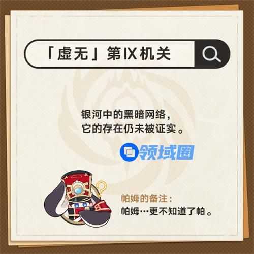 17、「虚无」第以机关。银河中的黑暗网络,它的存在仍未被证实。
