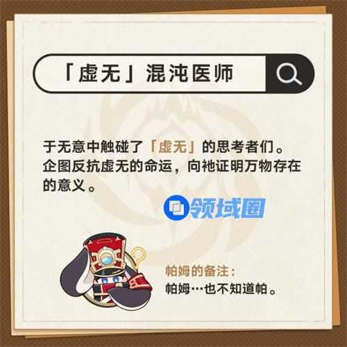 18、「虚无」混沌医师。于无意中触碰了「虚无]的思考者们。企图反抗虚无的命运,向池证明万物存在的意义。
