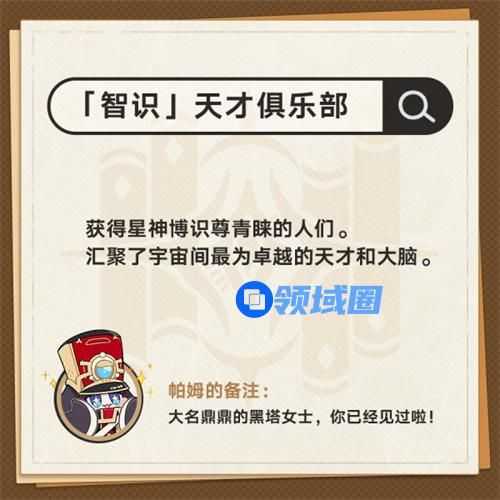 22、「智识]天才俱乐部。获得星神博识尊青睐的人们。汇聚了宇宙间最为卓越的天才和大脑。
