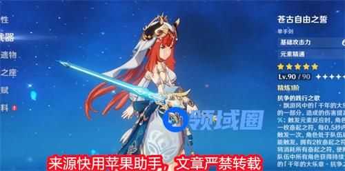 苍古自由之誓,这把武器是万叶的专武,但由于武器的词条是精通,而且特效是加元素伤害和攻击等也是非常的适合妮露,但不能和专武比。