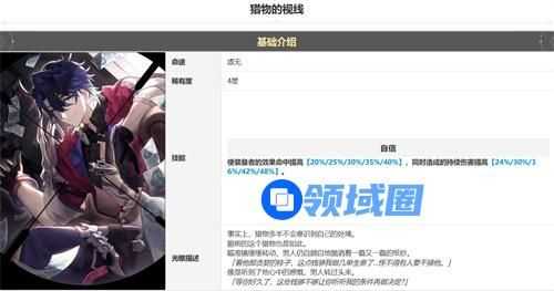 3、【猎物的视线】可以直接提升佩拉的效果命中,让佩拉施加负面效果的几率提升。
