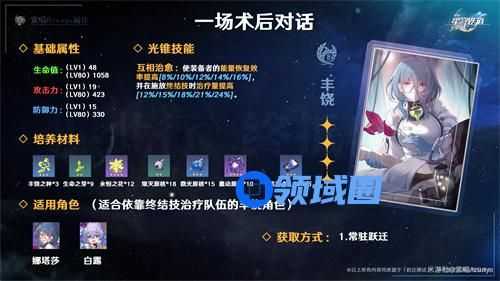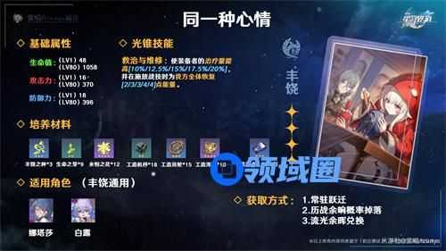 这个光锥是属于四星丰饶通用光锥,它可以提升娜塔莎的治疗量,并额外提供了为队友回能的功能,对于娜塔莎而言也是非常不错的选择。