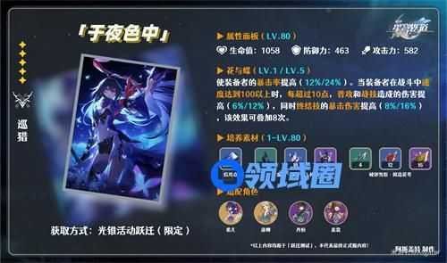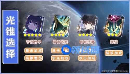 这个算是巡猎的万金油光锥了,如果没有专武以及星海巡航,我建议用这个,这个很容易叠到精五,精五提高32%攻击力以及24%暴击率,还是非常香的,非常推荐。