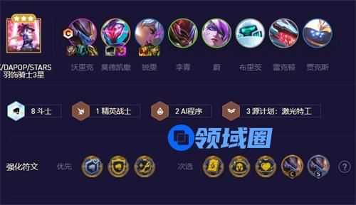 选秀优先拿攻速或者大剑,开局拉4级,2-5拉5级,争取打连胜开局。前期最好是3源计划过渡,用艾希打工,4到5级上尉和希维尔开2斗士2枪手,这一套可以保证强势开局。如果锐雯或武器出的早,又或是肉装开局,尽量先做4斗士,配日炎或者泰坦,后续再补充2枪手或2决斗,也可以上德莱文开机甲过渡。中期可以直接开6斗士武器带狼人装备。