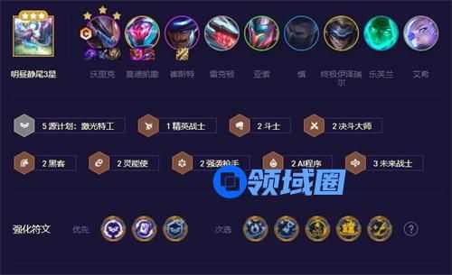 3、成型阵容:寒冰、鳄鱼、狼人、亚索、慎、卡牌、妖姬、铁男、EZ(5费)。