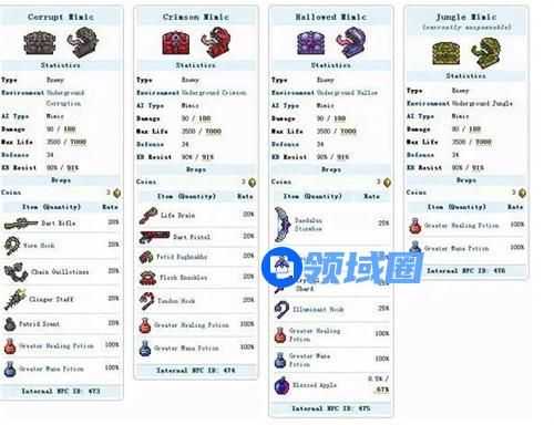 泰拉瑞亚当中玩家可以通过很多种方式获取到装备和道具,其中玩家击杀宝箱怪就会有概率掉落一些稀有道具,然而在游戏当中宝箱怪也有不同种类,所以掉落物也有所不同。最近就有不少的玩家问我宝箱怪到底掉落哪些道具,所以小编今天就给大家带来一期宝箱怪的掉落物一览希望能帮助到大家。
