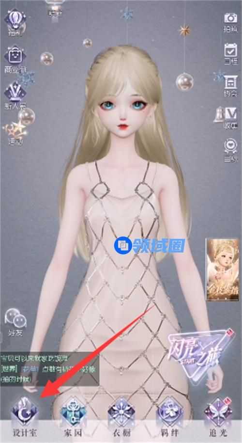 1、首先我们在游戏主页点击左下角的【设计室】,进入角色设计菜单页面。
