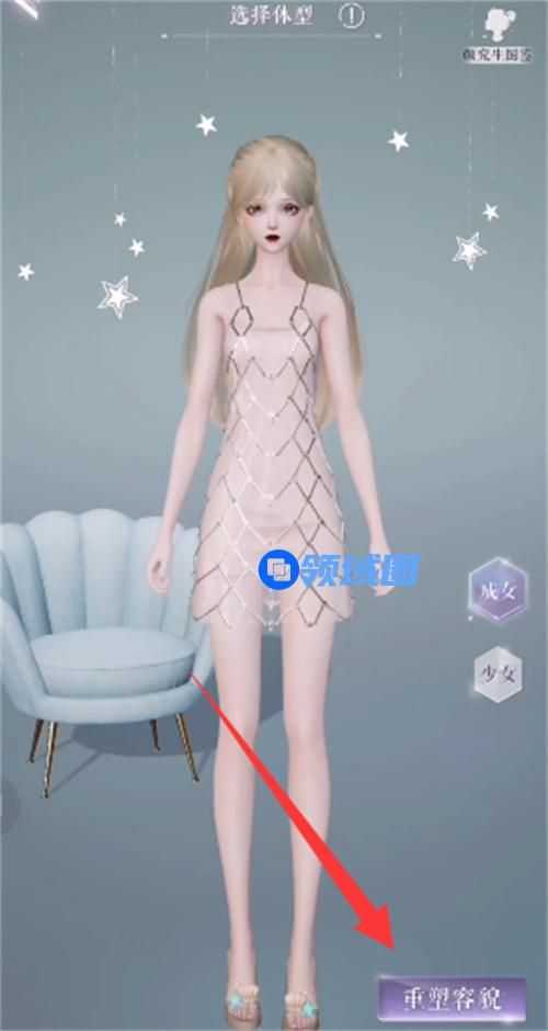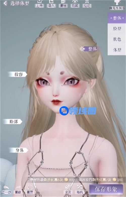 3、我们选择好自己想要的体型以后,点击右下角的重塑容貌,进入捏脸环节。