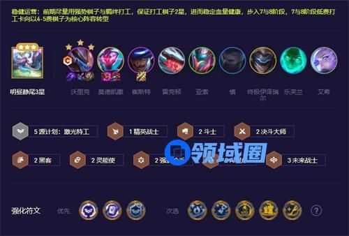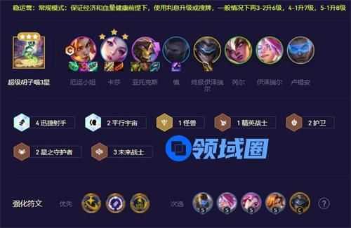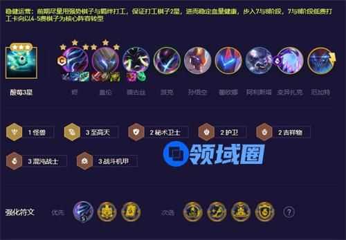 阵容组成:烬+盖伦+薇古丝+派克+孙悟空+蕾欧娜+牛牛+厄加特+扎克选择混沌战士羁绊。