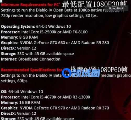 暗黑破坏神4最近也是公开了本作的配置要求,所以有很多的暗黑迷非常的好奇本作到底什么配置才能玩,对此小编今天给大家整理了本作的配置要求,希望各位玩家可以参考一下再去选择买不买。