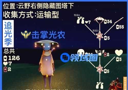 先祖位置:玩家到来云野蝴蝶平原后,往右侧走(去圣岛的入口),穿过结界,往浮石的方向飞。先祖在第二个高塔的后面;收集方式,运火,难度不大,只是在攀爬废塔时,需要一定的技巧。建议搭配中国风式的穿搭。