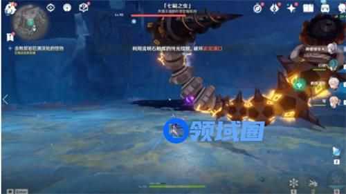7、随后需要和出现的怪物“七嗣之虫”进行战斗。这里友情提示- -下几个成就可以在这次战斗中解锁,不要打的太快了!如果打完了,也可以通过挑战巨蛇岩洞的区域BOSS完成。