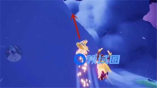 随后往回飞,出云洞后贴着左边的云飞到上面去。