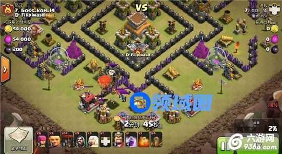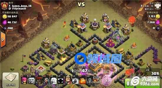 2、角落放一个MM,然后四个地震把鬼墙震掉,地方援兵是4个法师1个气球。毒药我留着对付骷髅陷阱,为防止后面进攻骷髅陷阱对我气球造成太大伤害。