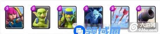 作为进行配合和辅助的牌,这套卡组的原作者选择了弓箭手+哥布林+哥布林投矛手。我自己使用的时候放弃了防御效率低下的哥布林投矛手,选择了效率超群且不会太亏圣水的亡灵。当然哥布林投矛手虽然防守效率低下,但却有别的卡无法比拟的磨对方塔血量的能力,3个哥布林轮流抗塔打出7矛的输出,7级以上哥布林投矛手一轮无干扰的磨血约是300左右。我认为这个卡组更需要的是效率的防守而不是磨血,所以会选择使用亡灵。