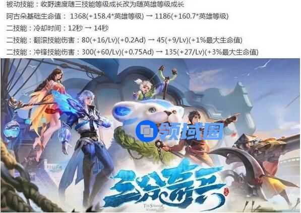 阿骨朵平调:基础血容量减少,2技能CD变长,后期2技能伤害增加。