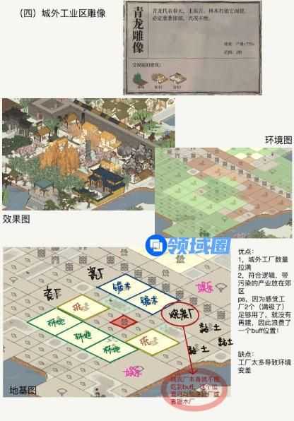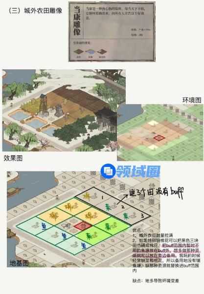 点评:农田数量拉满,缺哪个资源就把土地替换进buff范围内(会影响环境)